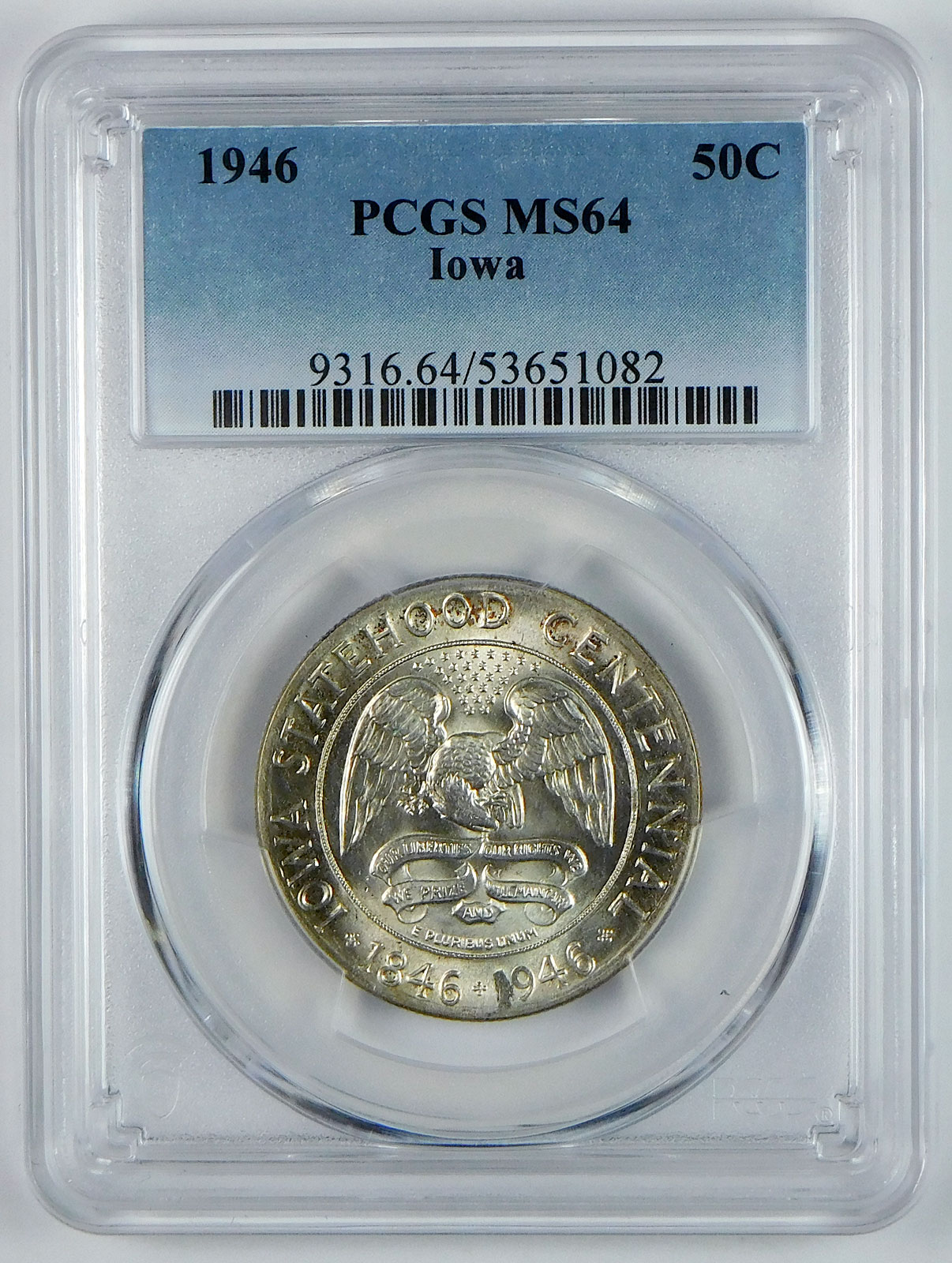 1946 Iowa Centennial Commemorative Silver Half Dollar - PCGS MS 64 quantity