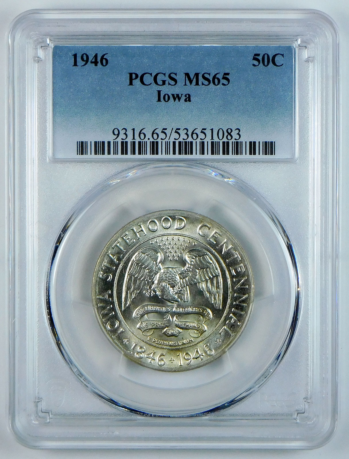 1946 Iowa Centennial Commemorative Silver Half Dollar – PCGS MS 65