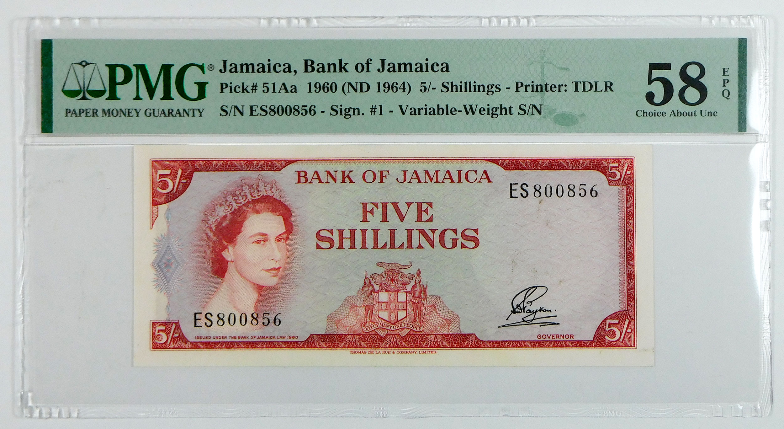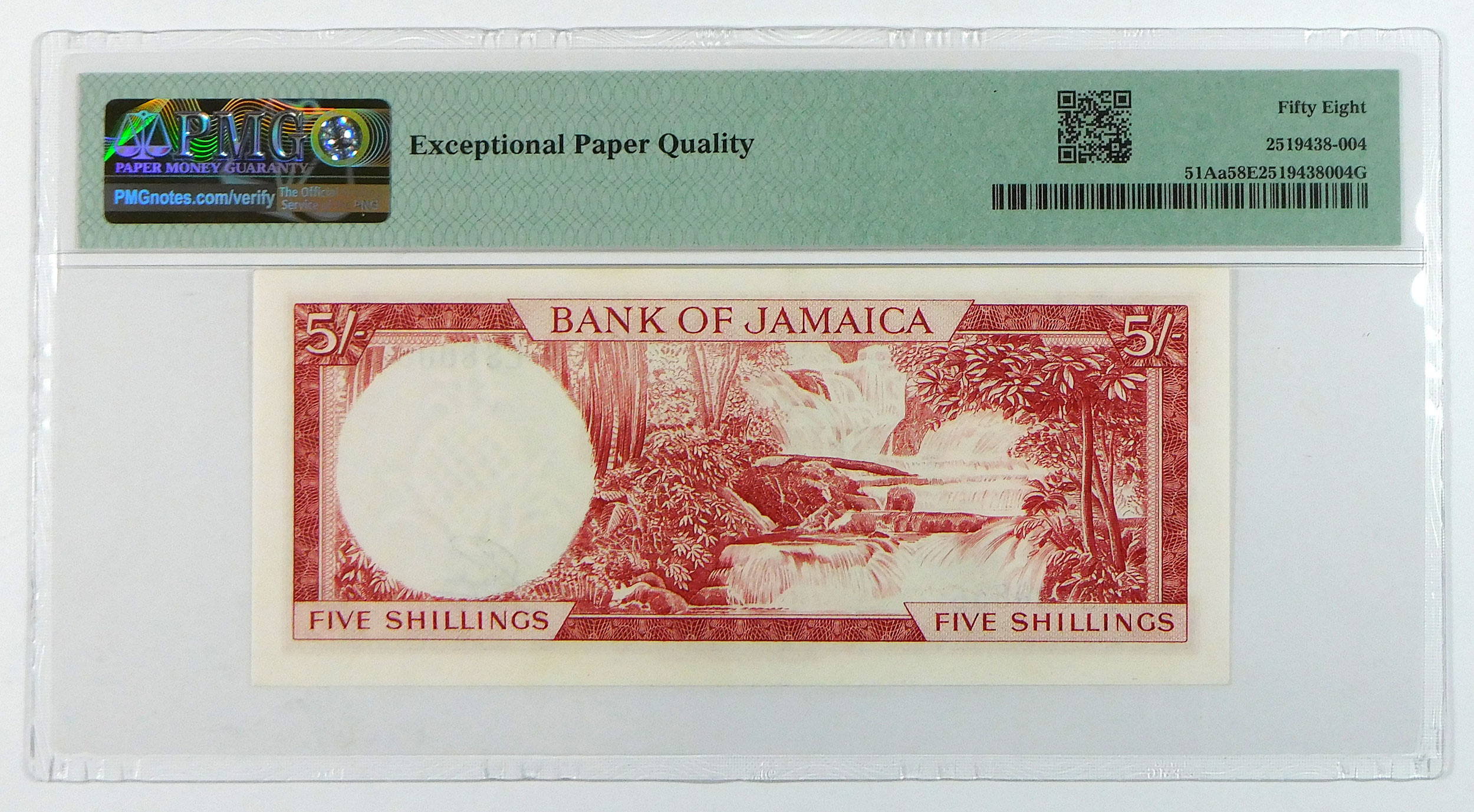 1960(ND 1964) Bank of Jamaica 5 Shillings - Pick# 51Aa - PMG 58 Choice About Uncirculated EPQ quantity