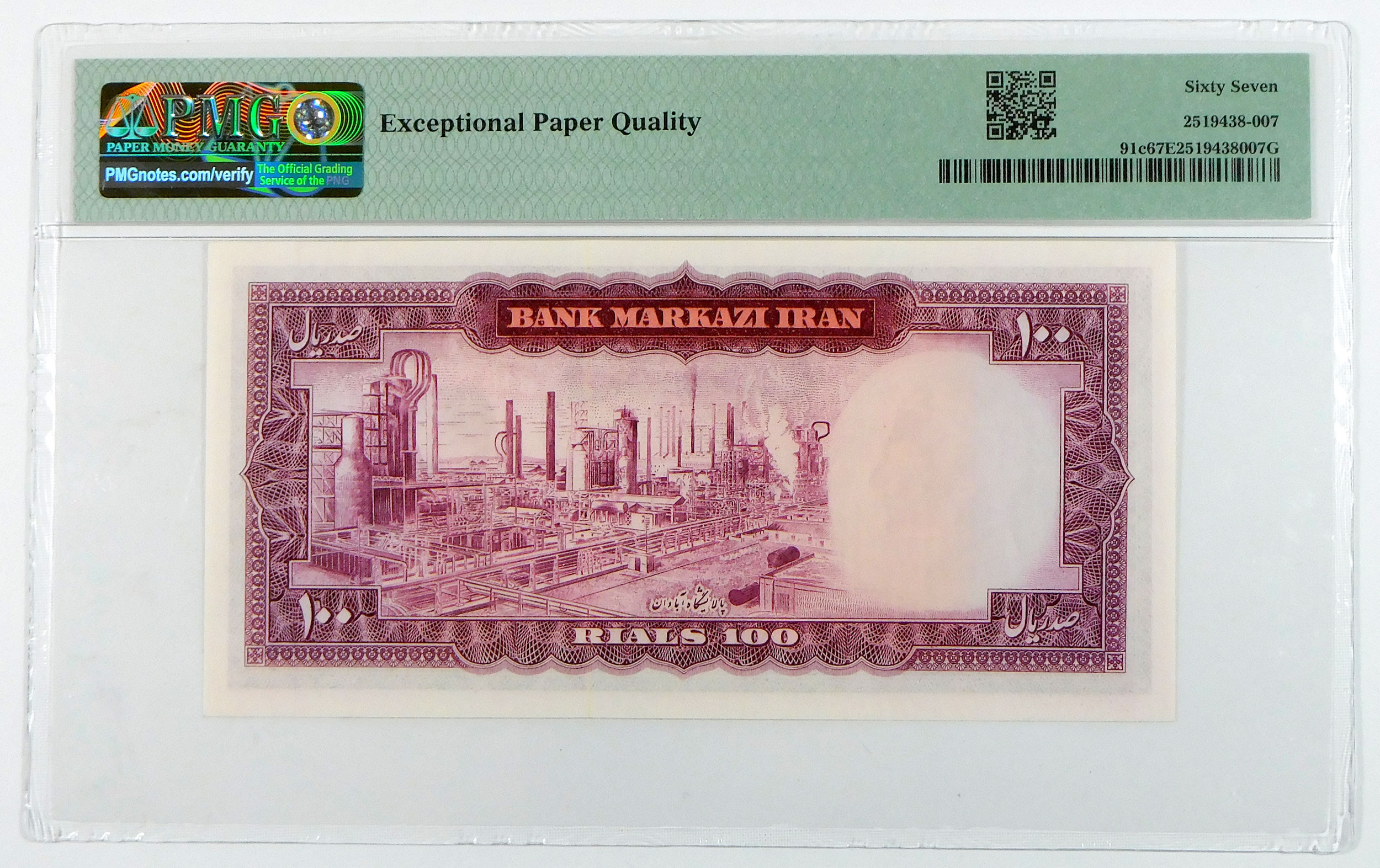 ND(1971-73) Iran 100 Rials – Pick# 91c – PMG 67 Superb Gem Uncirculated EPQ