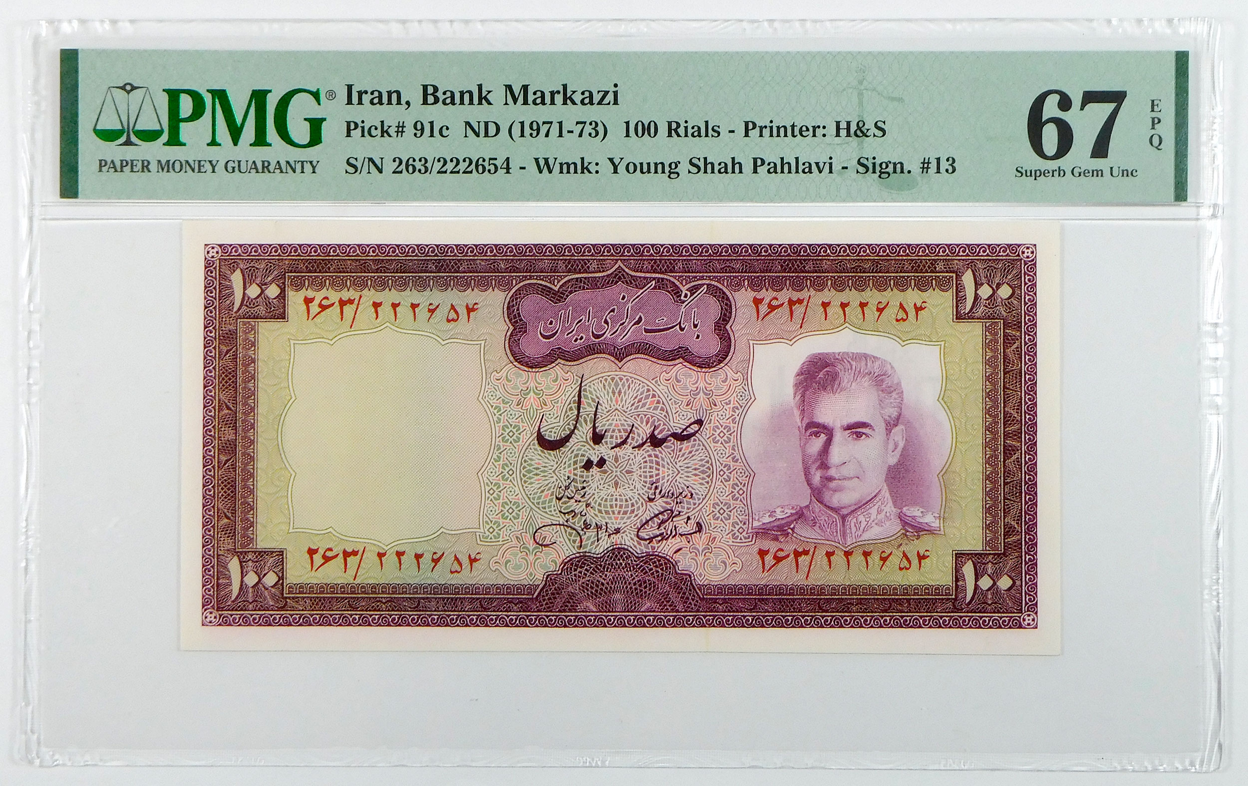 ND(1971-73) Iran 100 Rials - Pick# 91c - PMG 67 Superb Gem Uncirculated EPQ quantity
