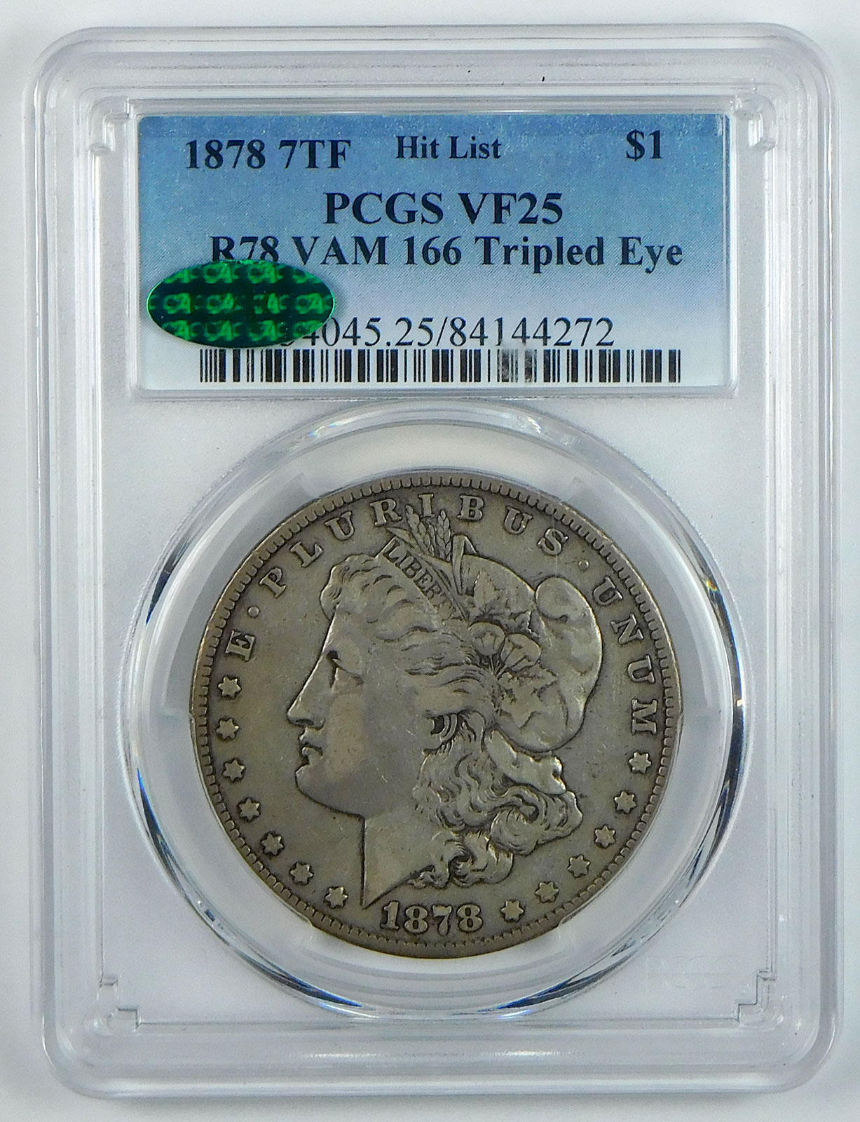 1878 7TF R78 Morgan Silver Dollar - PCGS VF 25 - VAM 166 Tripled Eye - CAC quantity