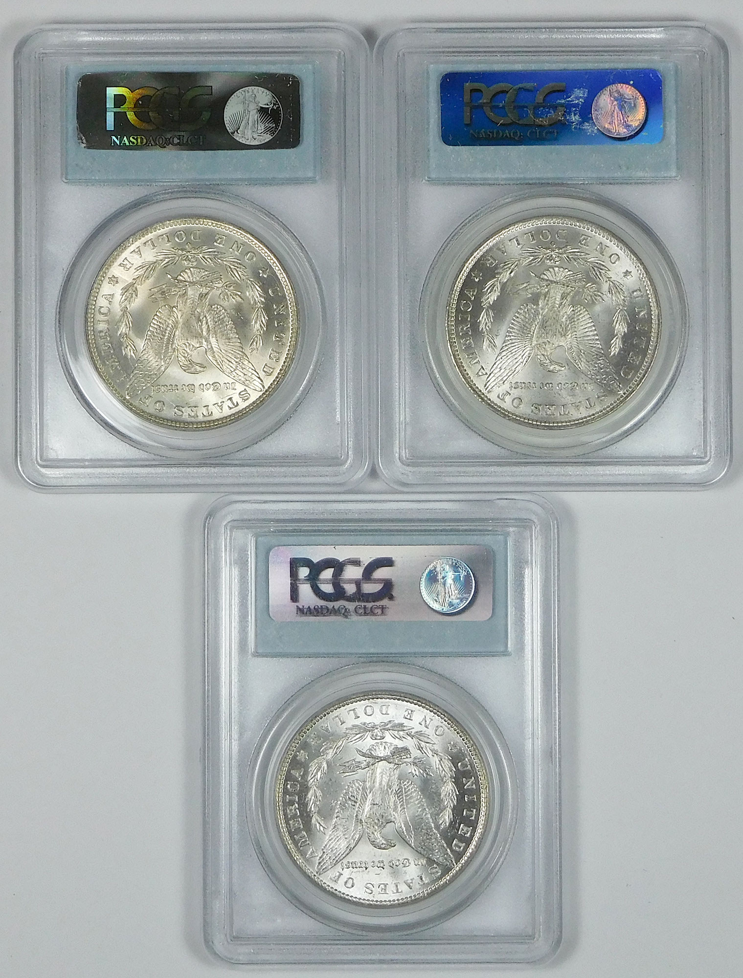 1881-S, 1885-O & 1887 Morgan Silver Dollar Set – PCGS MS 63