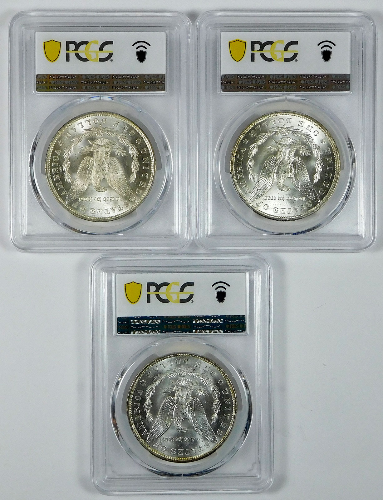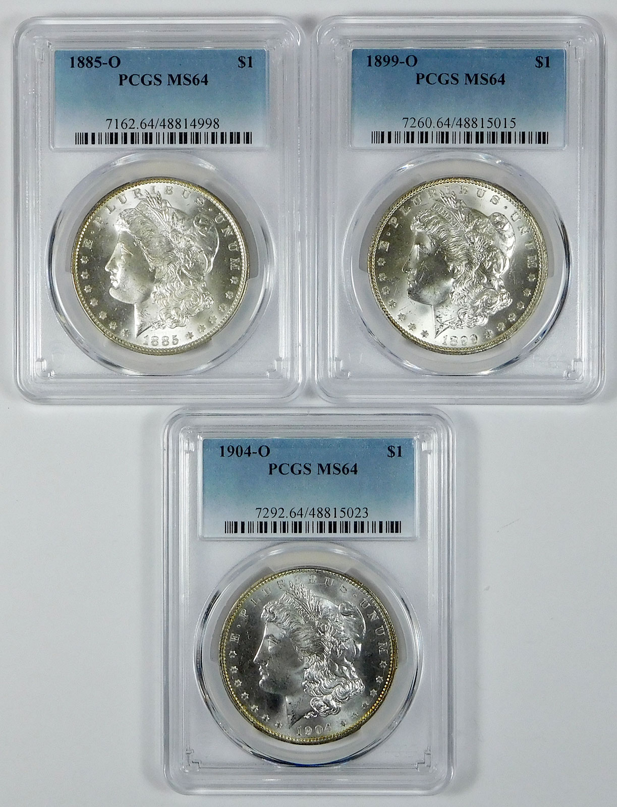 1885-O, 1899-O & 1904-O Morgan Silver Dollar Set – PCGS MS 64