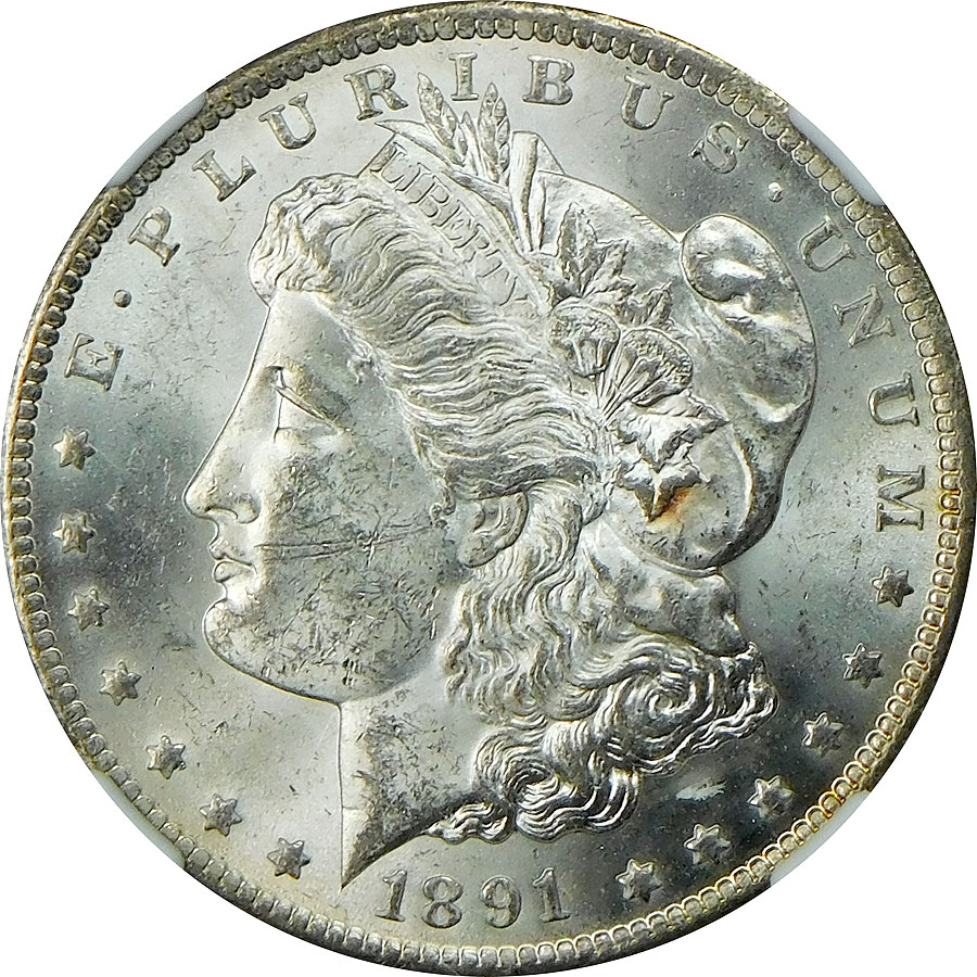 Great details with flashy luster. Liberty’s cheek has two heavier contact marks across her cheek and a toning spot on the cap.