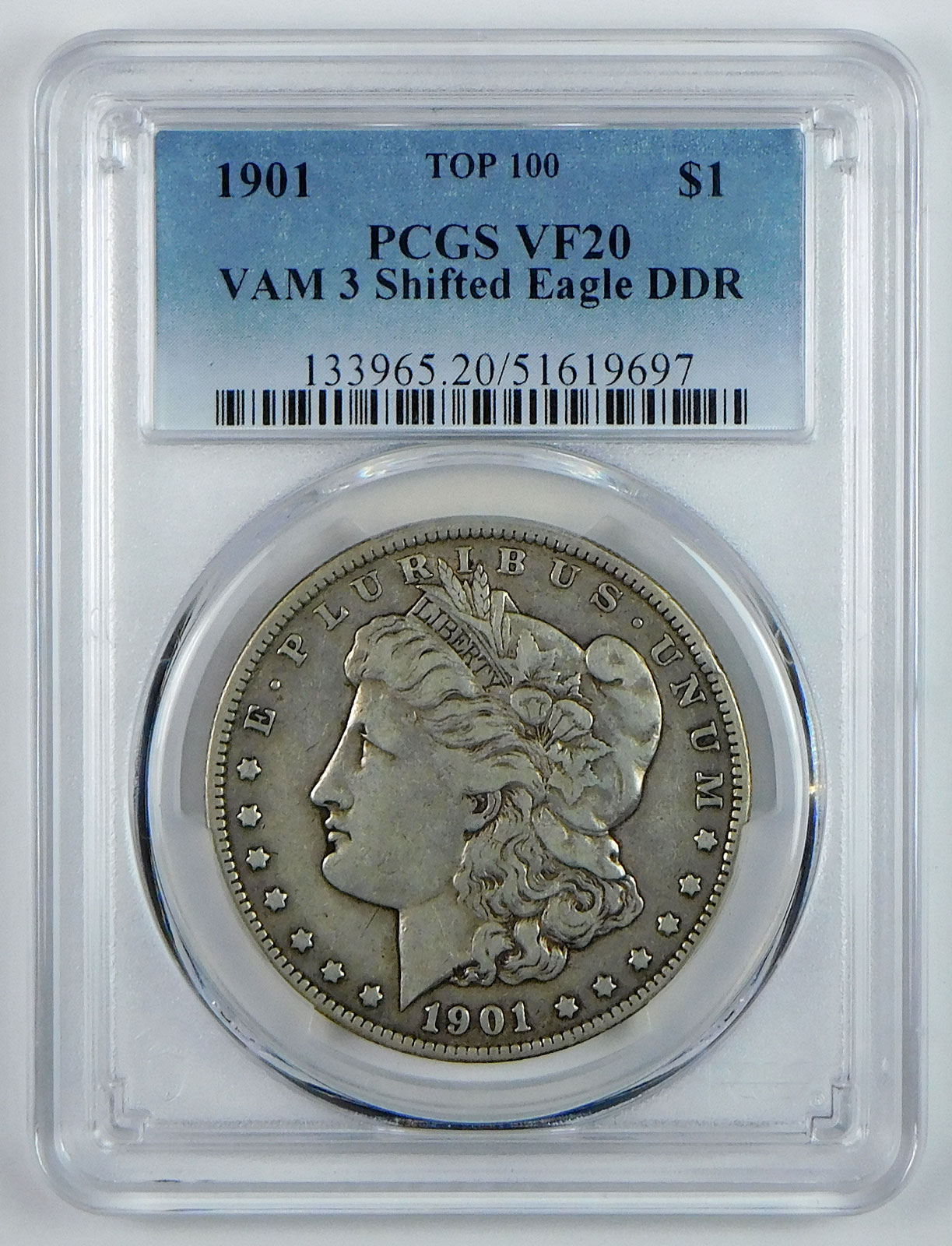 1901 Morgan Silver Dollar (VAM-3 DDR Shifted Eagle) – PCGS VF 20