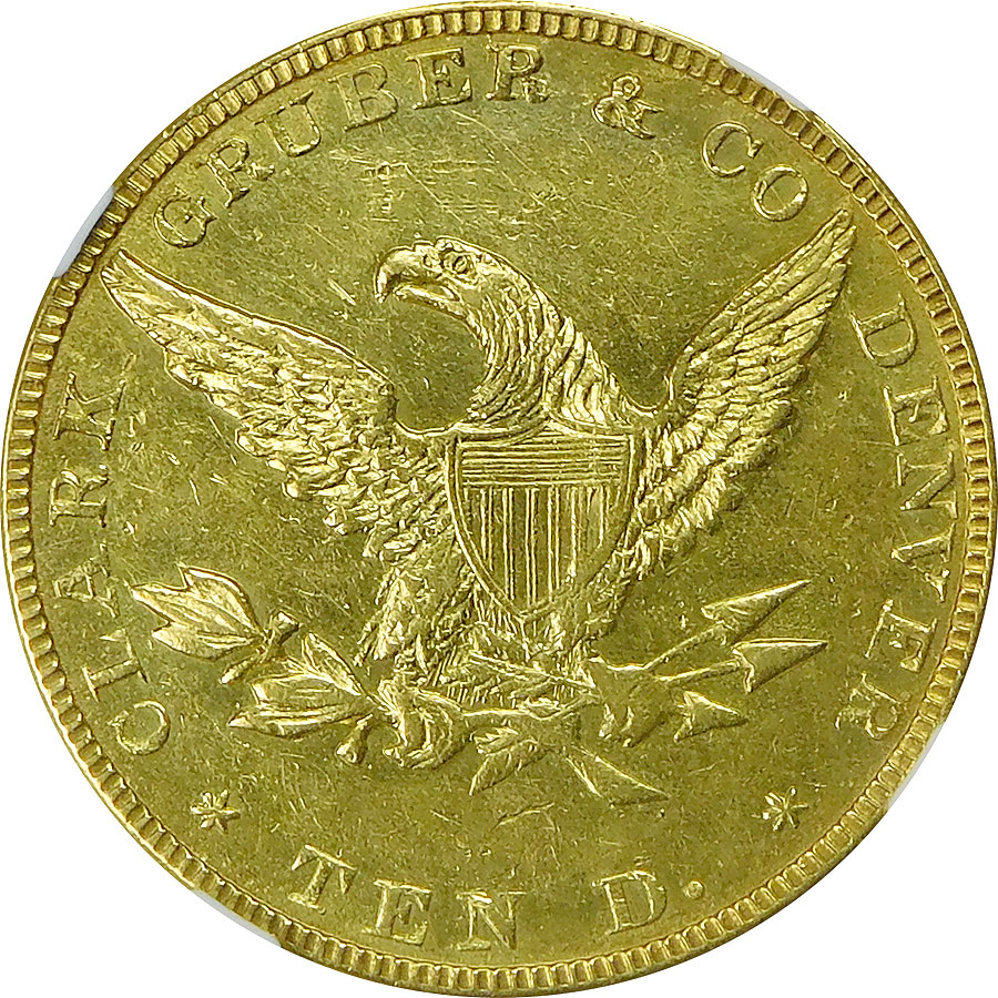 1861 $10 Clark Gruber – Colorado Gold – NGC AU 55