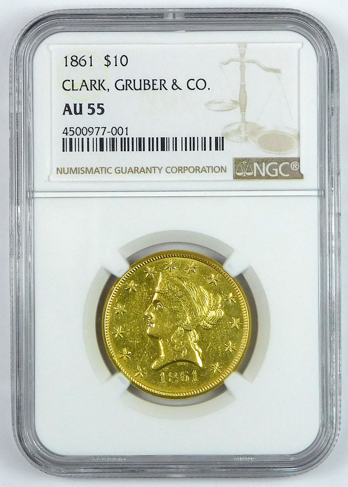 1861 $10 Clark Gruber - Colorado Gold - NGC AU 55 quantity
