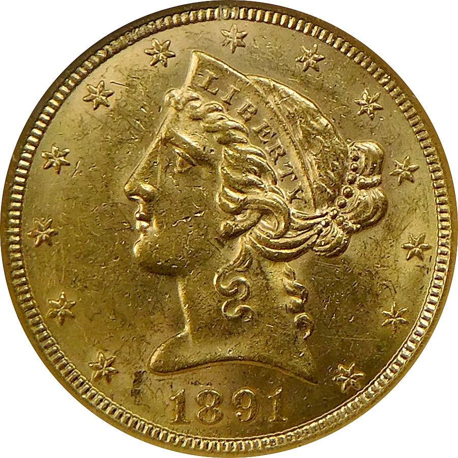 1891-CC $5 Gold Liberty Head Half Eagle – NGC MS 61