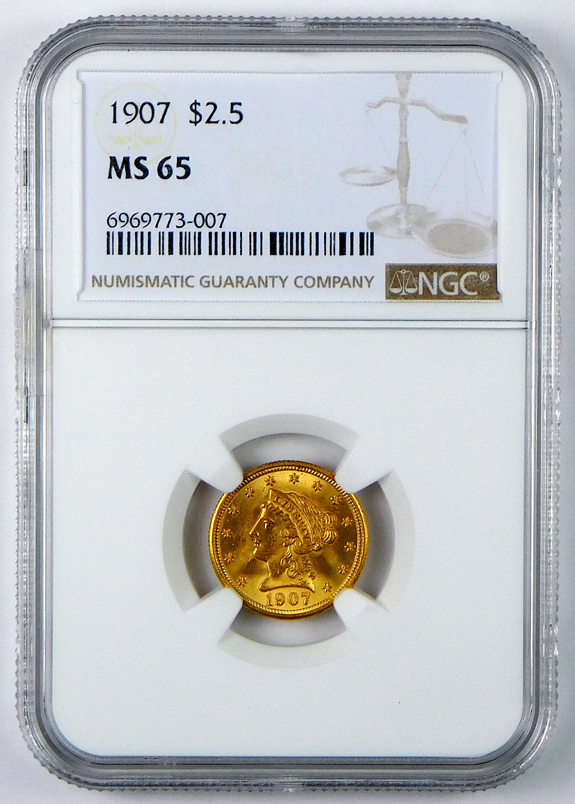 1907 $2.5 Gold Liberty Head Quarter Eagle – NGC MS 65