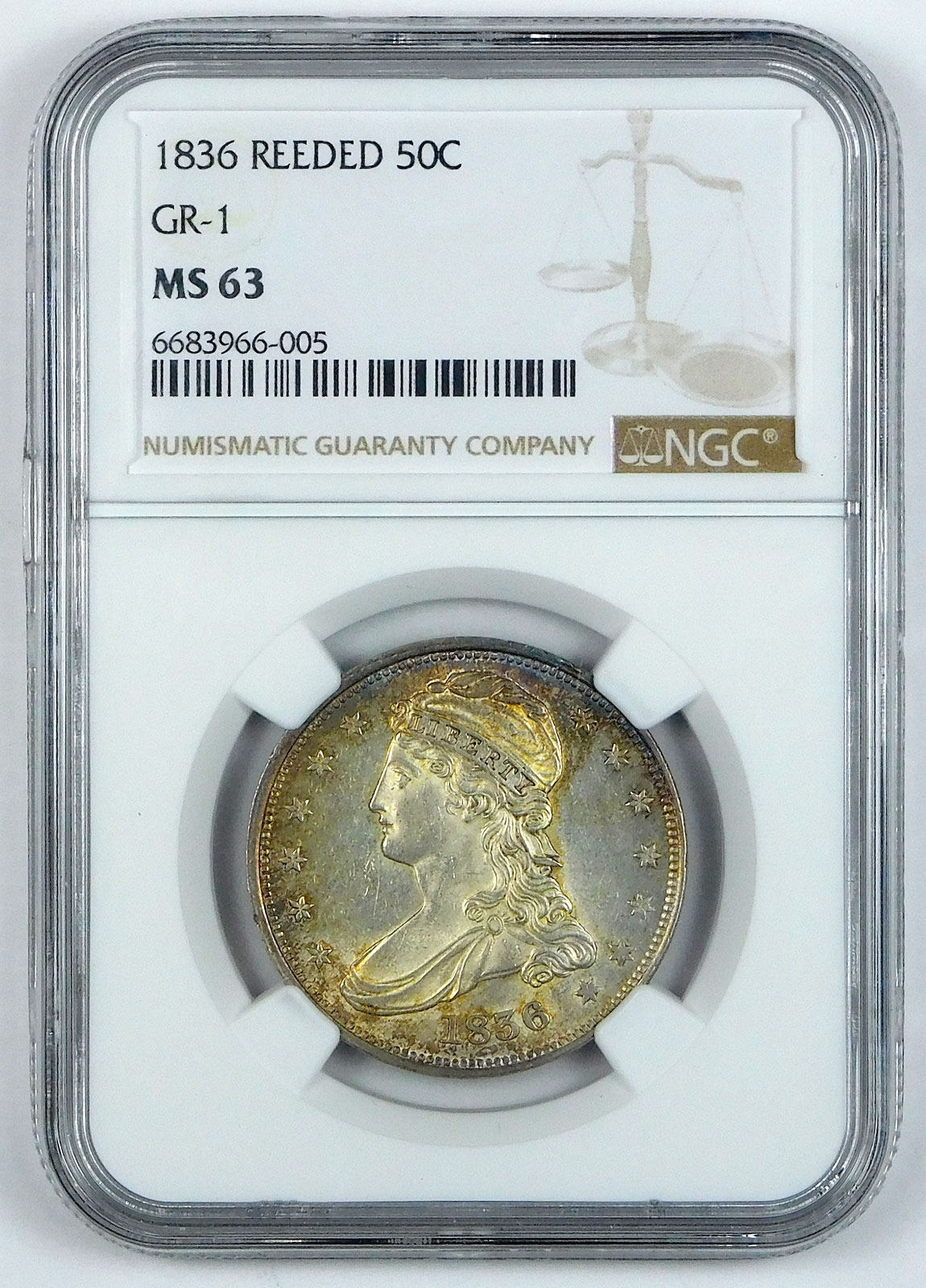 1836 Reeded Capped Bust Half Dollar (GR-1) – NGC MS 63