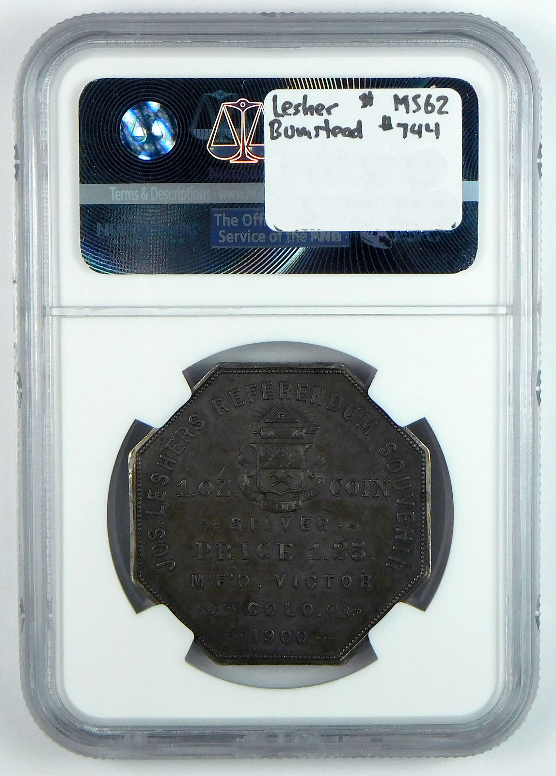1900 Lesher Silver Dollar (HK-789; Z-3) AB Bumstead #744 – NGC MS 62