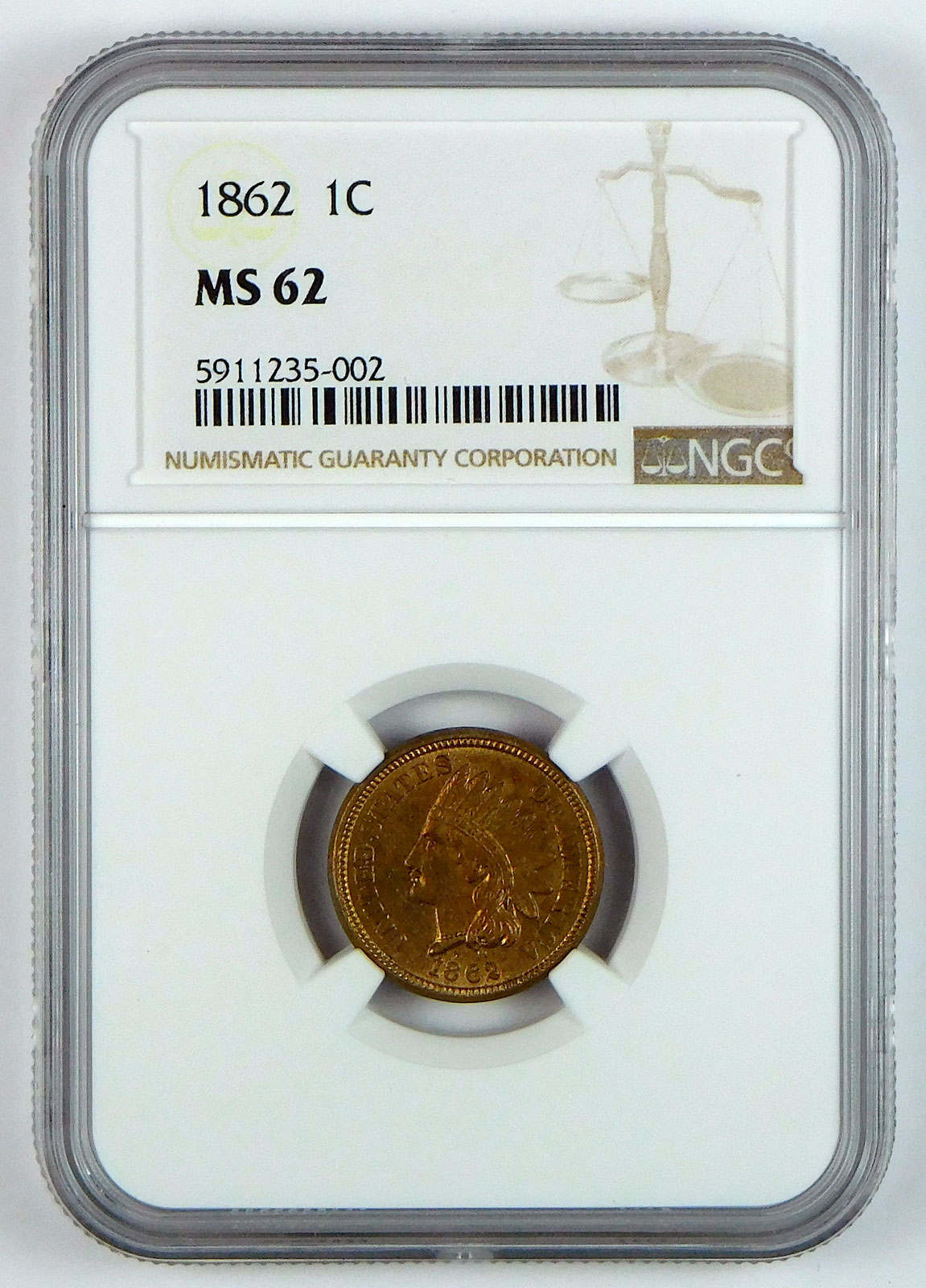 1862 Indian Head Cent – NGC MS 62