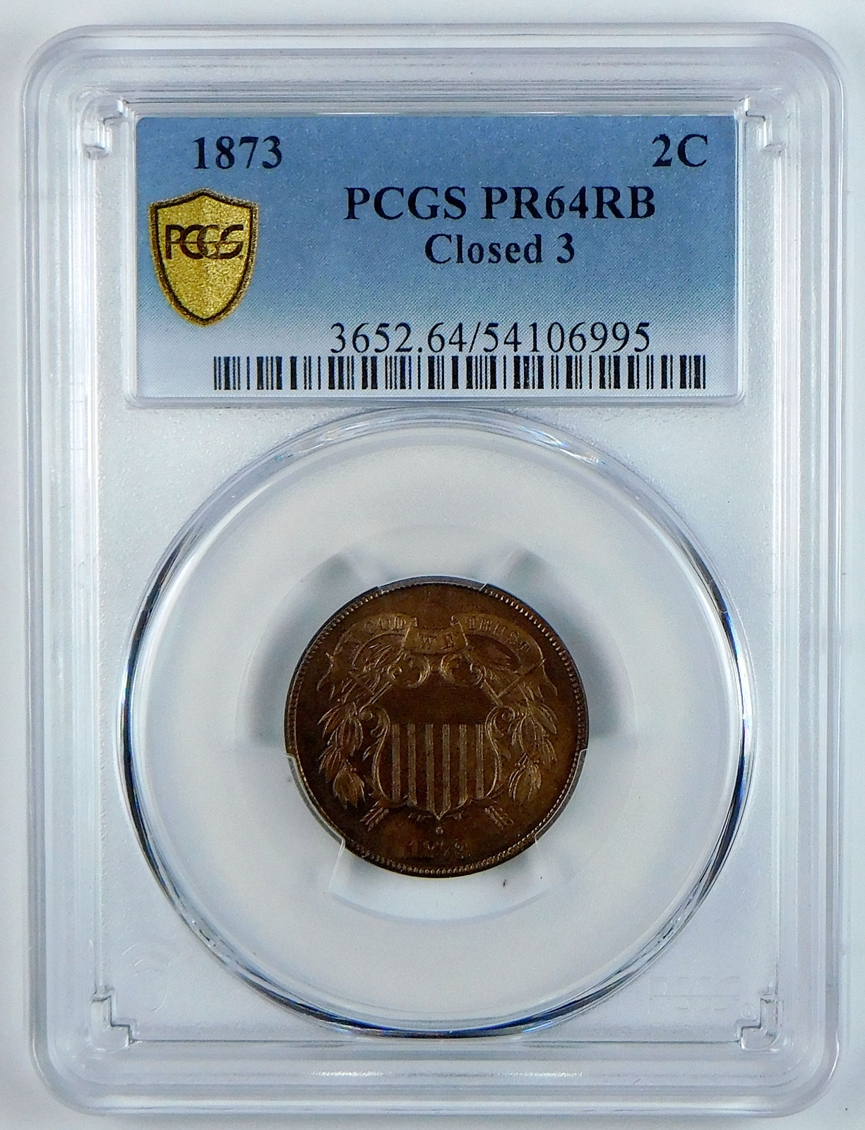 1873 Two-Cent Piece – PCGS PR 64 Red-Brown – Closed 3